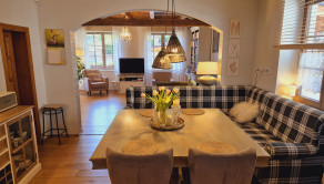 Dom v rustikálnom prevedení kombinuje čaro prírodných materiálov v spojení s moderným komfortom pre nadčasové bývanie, pričom prešiel rozsiahlou rekonštrukciou v roku 2020 a naďalej bol postupne modernizovaný a udržiavaný.